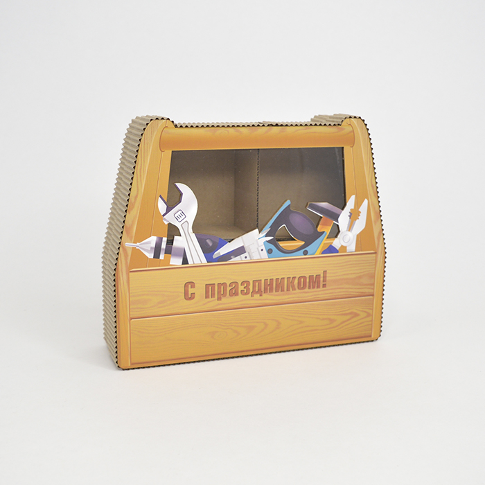 Короб из микрогофрокартона "Ящик с инструментами" 20*16,5*5 крафт