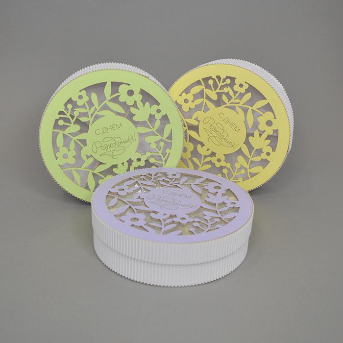 Короб из микрогофрокартона д18 в5 см резка "С днем рождения №2" - белый