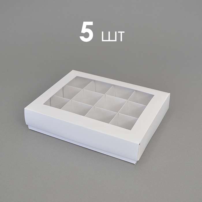 Короб прямоугольный из микрогофрокартона 19*13,5*5 см белый с окном