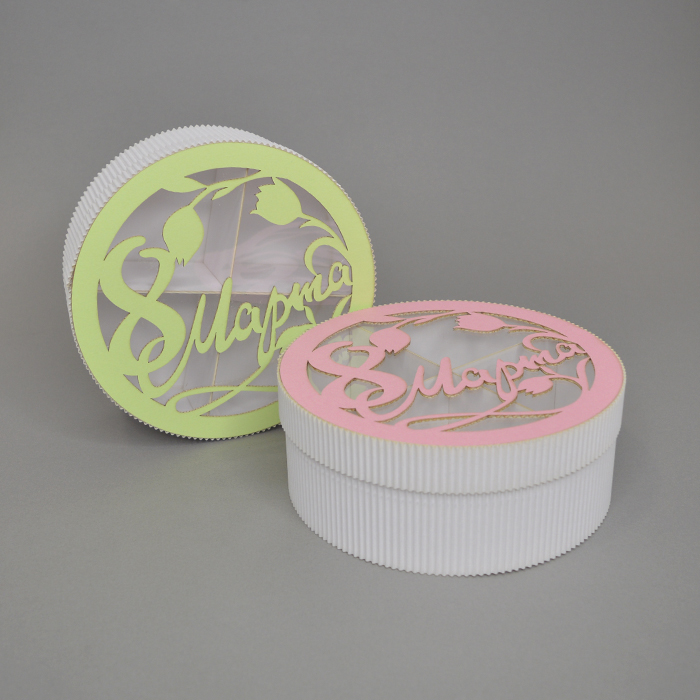 Короб из микрогофрокартона д15 в5 см резка "8 марта" белый