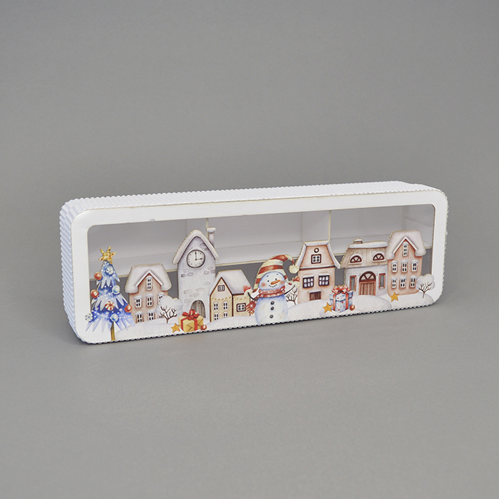 Короб прямоугольный из микрогофрокартона "Снежные домики" 27*8,5*5 см белый